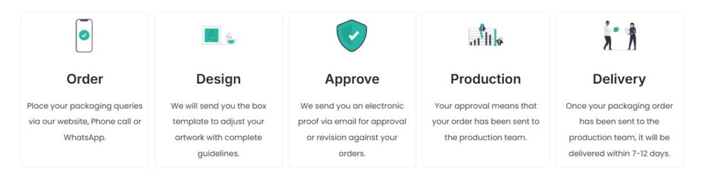 Providing simplicity to manage packaging orders is our aim at BoxLark. We give you all opportunities to customize your Kraft, rigid, mailer, cardboard, and all other custom packaging boxes as per your requirement. It helps BoxLark deliver your orders on time. So, explore our simplified ordering process.